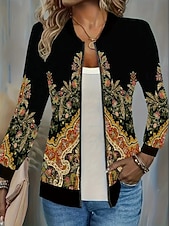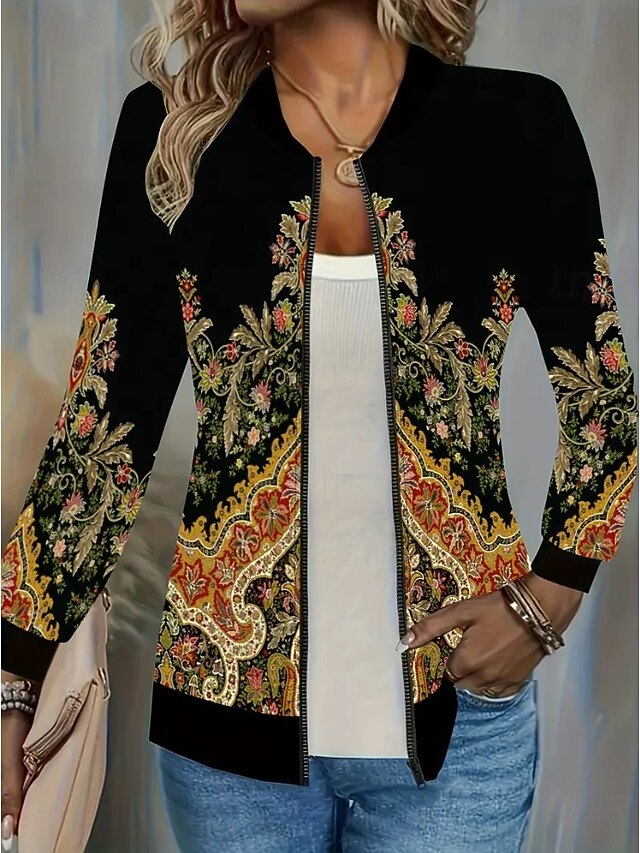 This Women's Casual Jacket Warm Quick Dry Zipper Pocket Elegant Fashion Daily Simple Floral Vacation Casual Daily Holiday Regular Baseball Collar Regular Fit Long Sleeve Outerwear Black Gold Black Dark combines elegant design with practical functionality. Every detail has been carefully considered to ensure you get the best possible experience. The high quality construction means this product will serve you well for years to come.
