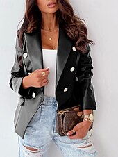 $29.99 - Women's Faux Leather Jacket Casual Jacket Comfortable Buttons Fashion Modern Outdoor Plain Going out Casual Daily Weekend Double Breasted Regular Lapel Regular Fit Long Sleeve Outerwear Black Wine 2025. Shop for cheap Faux Leather Jackets online? Buy at lightinthebox.com on sale today!