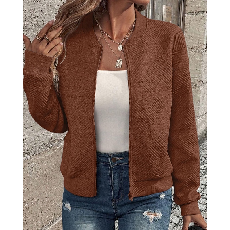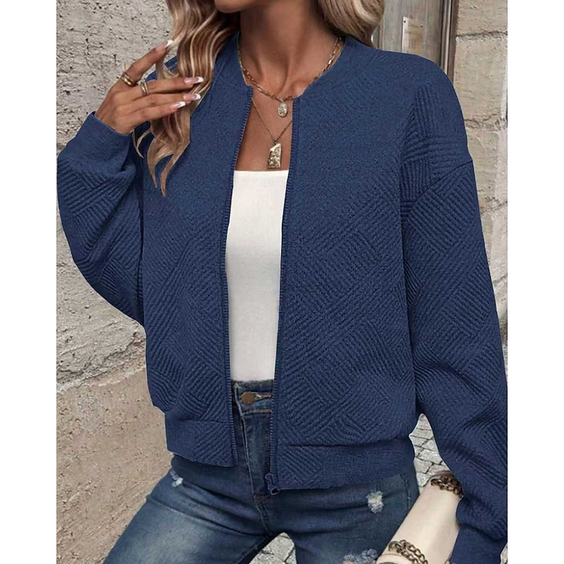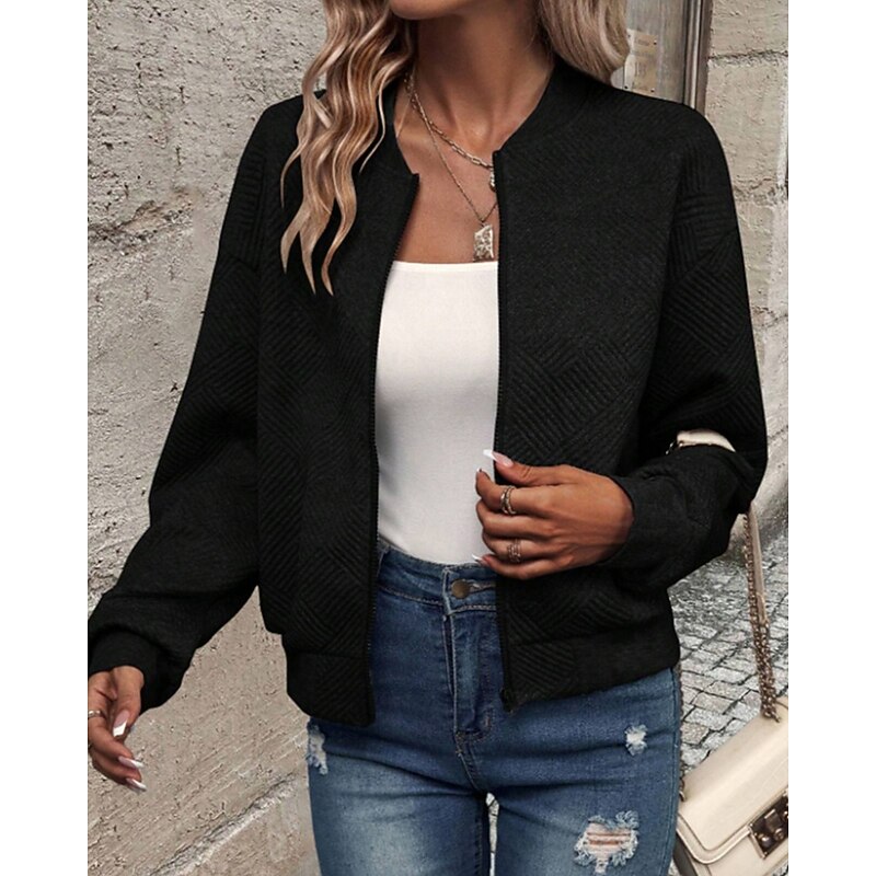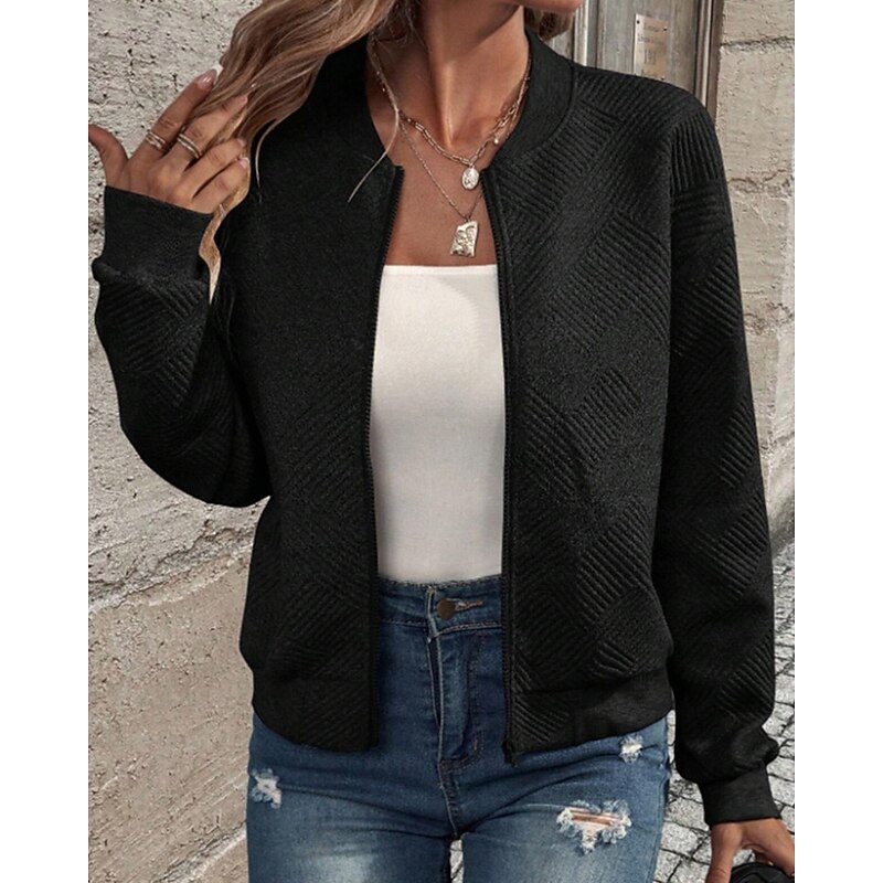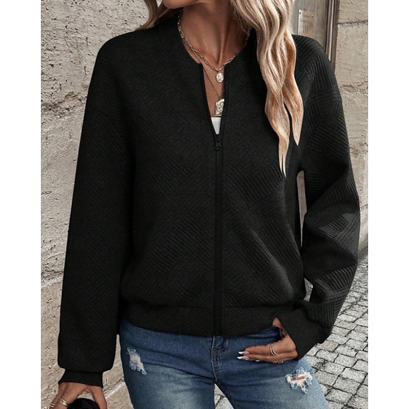 This Women's Jacket Casual Jacket Comfortable Zipper Casual Solid Color Street Casual Daily Wear Going out Regular Crewneck Regular Fit Long Sleeve Outerwear Navy Black White Spring Fall combines elegant design with practical functionality. Every detail has been carefully considered to ensure you get the best possible experience. The high quality construction means this product will serve you well for years to come.