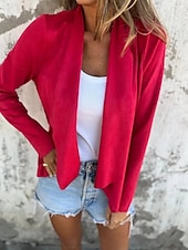 More information about Women's Casual Jacket Comfortable Breathable Oversized Fashion Daily Plain Outdoor Casual Daily Open Front Regular Collarless Regular Fit Long Sleeve Outerwear Black Red Blue Spring Fall