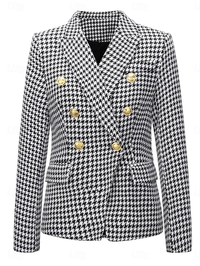 More information about Women's Blazer Work Street Fall Winter Regular Coat Regular Fit Breathable Elegant Stylish Jacket Long Sleeve non-printing Solid Color Stripes and Plaid with Pockets White+Black Black Red