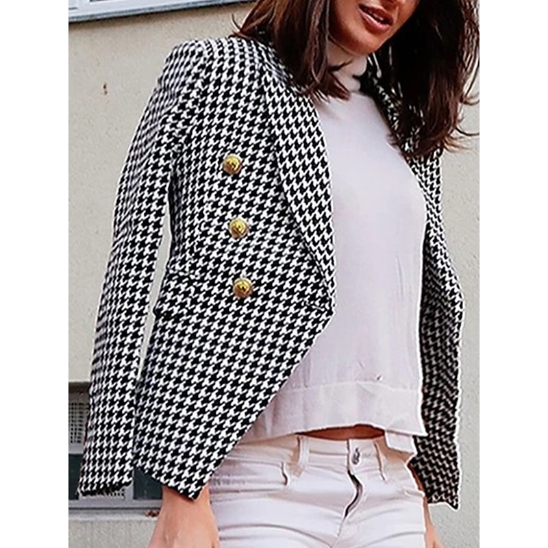 Women's Blazer Work Street Fall Winter Regular Coat Regular Fit Breathable Elegant Stylish Jacket Long Sleeve non-printing Solid Color Stripes and Plaid with Pockets White+Black Black Red 7