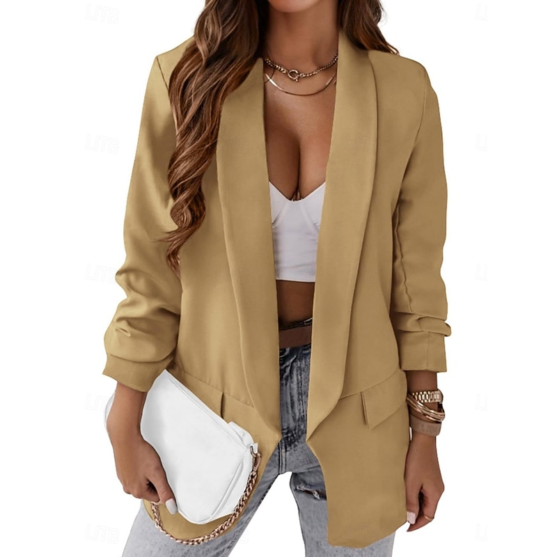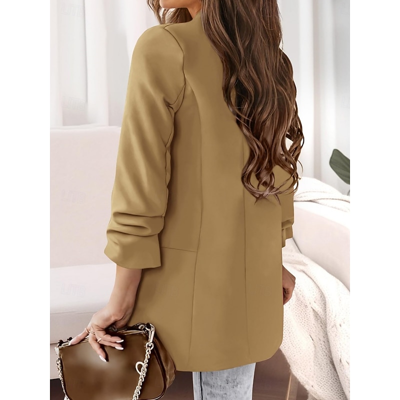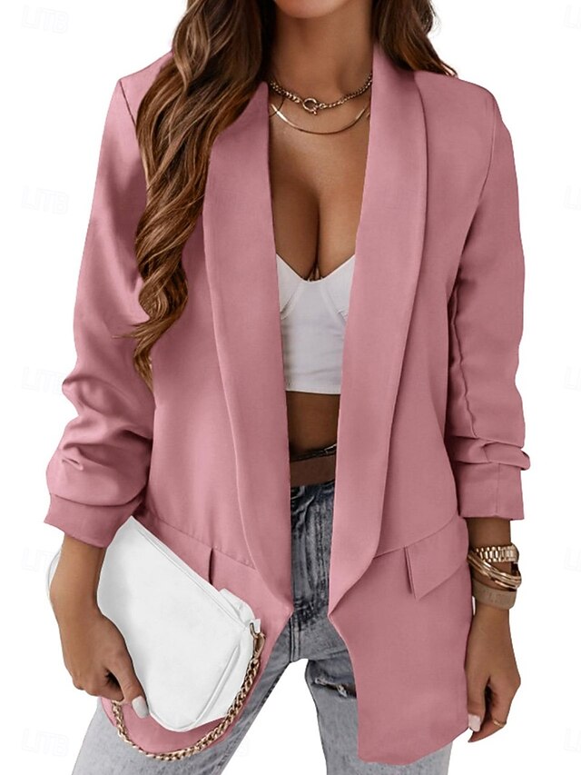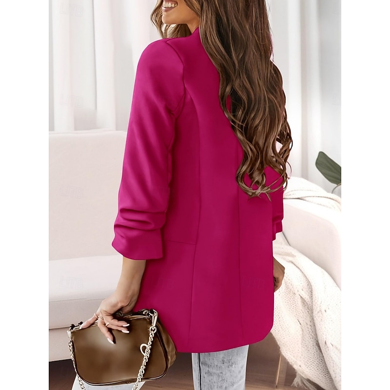 More information about Women's Blazer Comfortable Breathable Pocket Casual Plain Office Street Casual Daily Wear Open Front Regular Turndown Regular Fit Long Sleeve Outerwear Pink Fuchsia Khaki Spring Fall