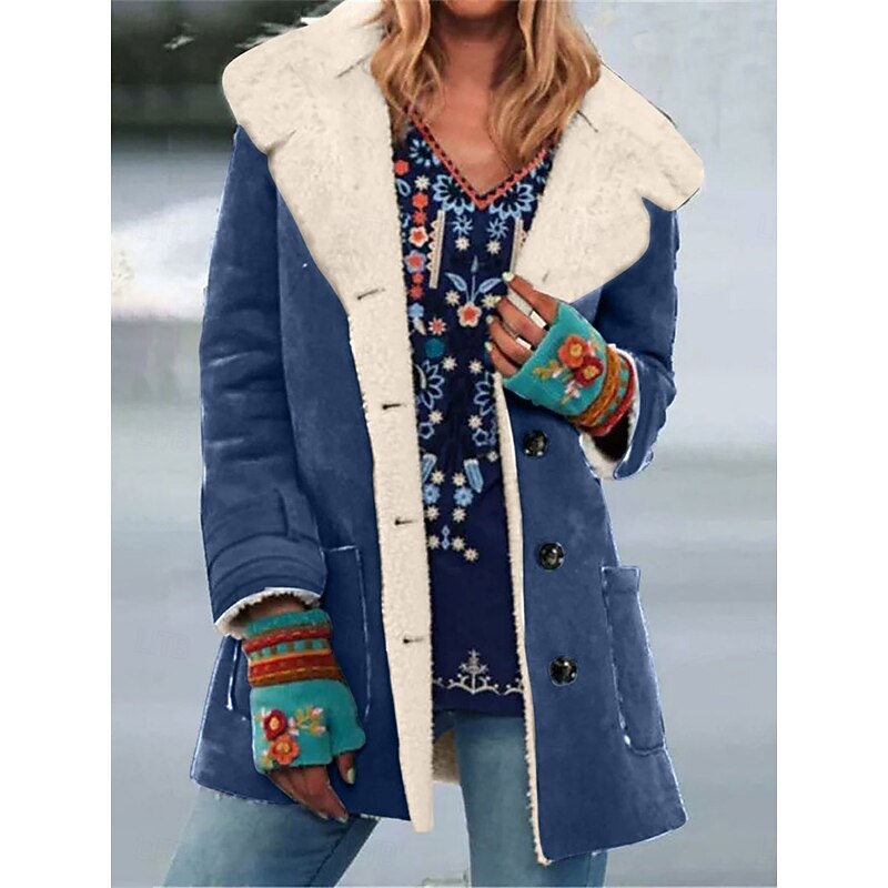 Highlights [Fabric:] Crafted from high-quality polyester, this women's teddy coat offers a warm and breathable experience, perfect for fall and winter seasons. The fleece lining provides exceptional comfort, making it ideal for cooler weather. [Fit:] The coat features a regular fit that flatters various body types, ensuring both style and comfort. Its long sleeves are designed to keep you cozy while maintaining a sleek silhouette. [Design Highlights:] Emphasizing style and functionality, the coat includes a turndown neckline and a single-breasted placket with large, classic buttons. Side pockets offer practical storage while enhancing its casual, laid-back style. [Occasions:] This versatile outerwear is suitable for a range of occasions, including daily wear, vacations, street outings, and casual gatherings. It's the perfect choice for those who want to combine warmth with fashion in their everyday wardrobe. [Size Range:] Available in sizes S, M, L, XL, and 2XL, this coat caters to a variety of figures, ensuring a comfortable fit for everyone.