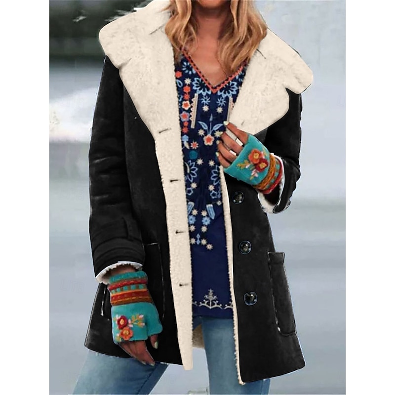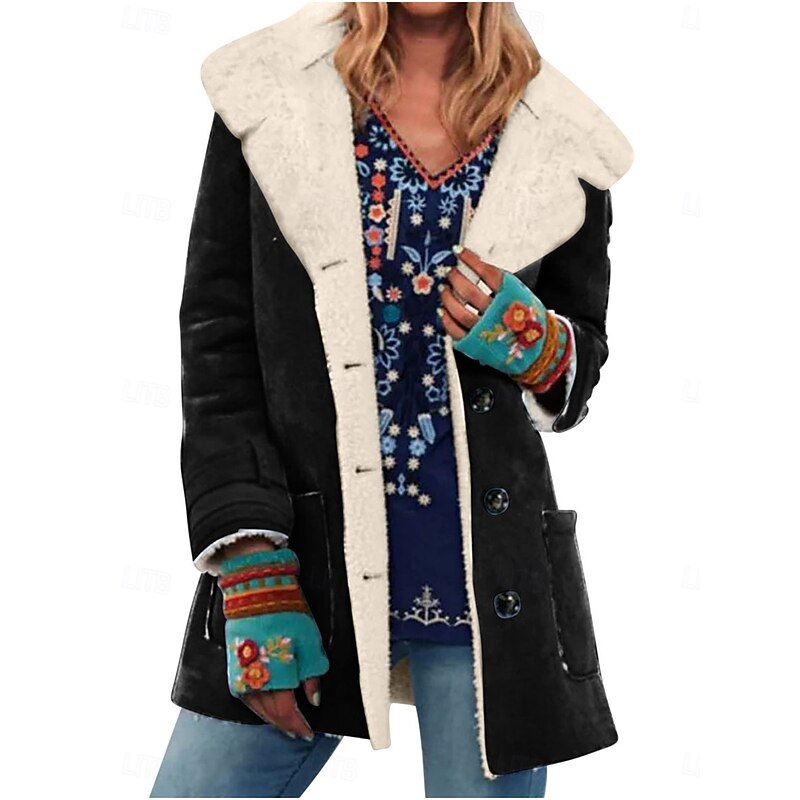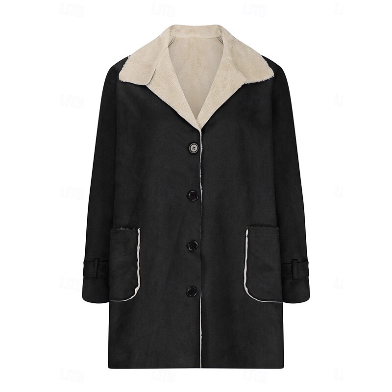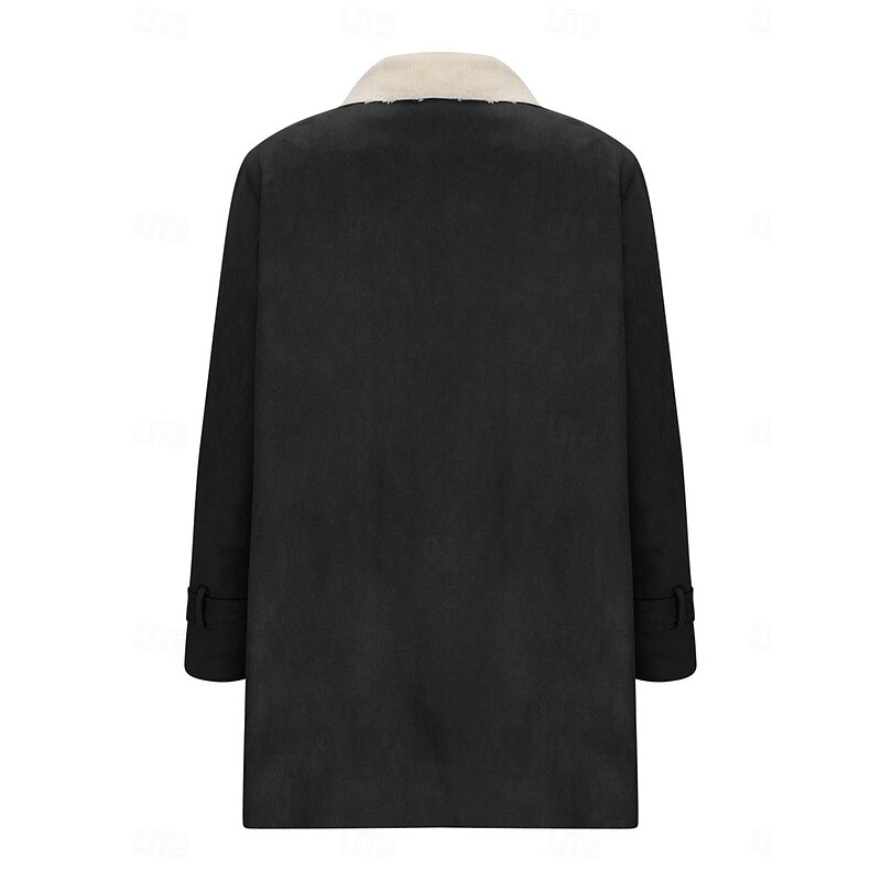 More information about Women's Fleece Jacket Teddy Coat Warm Breathable Buttons Pocket Fleece Lined Casual Plain Vacation Street Daily Wear Going out Single Breasted Regular Turndown Regular Fit Long Sleeve Outerwear Black