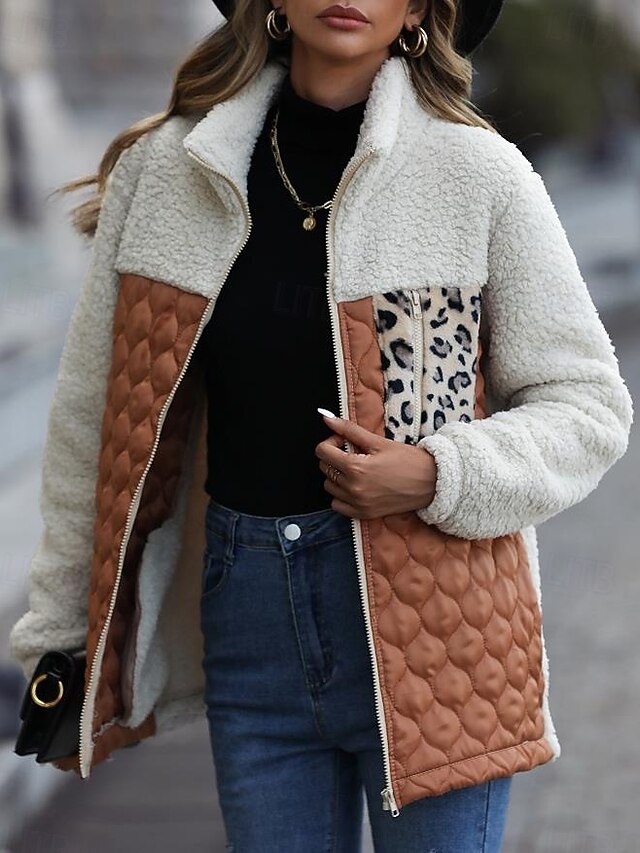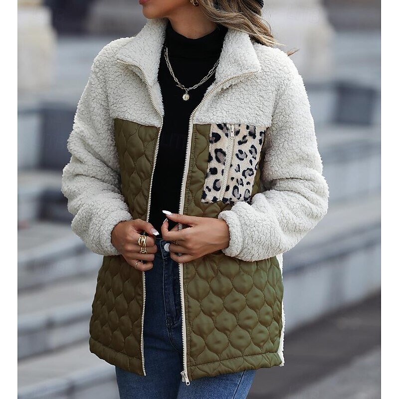 Highlights [Fabric & Fit:] This stylish women's trench coat is crafted from high-quality polyester, ensuring a warm, breathable, and micro-elastic experience. It's designed for a regular fit, offering comfort and ease of movement while maintaining a slim silhouette. The coat’s plush, cream-colored sherpa fleece on the sleeves and shoulders delivers a cozy texture, perfect for chilly fall and winter days. [Design Highlights:] Featuring a dynamic patchwork design, this coat blends multiple textures for a contemporary look. The rich tan quilted sections add sophistication, while the bold leopard print panel injects a modern twist. The coat's zip-up design is complemented by a stand-up collar, offering a practical yet elegant appearance. [Occasions:] Ideal for going out during fall and winter, this trench coat suits both casual and semi-formal occasions. Whether paired with jeans or trousers, it completes a laid-back yet polished ensemble, perfect for everyday outings or weekend gatherings. [Size Options:] Available in a range of sizes from S to XL, this coat caters to various body types, ensuring a stylish and comfortable fit for everyone. [Care Instructions:] Easy to maintain, this trench coat requires a simple machine wash, combining style with convenience for everyday wear. Perfect for everyday use. High quality materials and excellent craftsmanship ensure long-lasting durability.