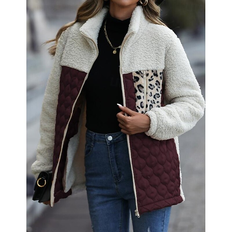 Women's Trench Coat Going out Fall Winter Long Coat Regular Fit Warm Breathable Stylish Casual Jacket Long Sleeve Leopard Slim Fit Wine Army Green Coffee