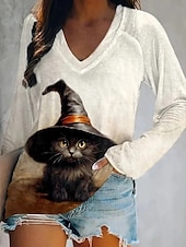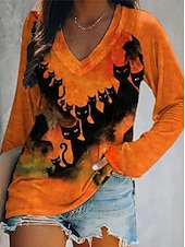 This Halloween Women's T shirt Monster Long Sleeve V Neck Long Sleeve Graphic Casual Vintage Stylish Classic Regular Tops Daily Print Orange off-white Khaki Spring Fall Prefall combines elegant design with practical functionality. Every detail has been carefully considered to ensure you get the best possible experience. The high quality construction means this product will serve you well for years to come.