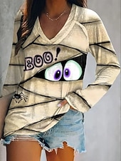 Why Choose Halloween Women's T shirt Monster Long Sleeve V Neck Long Sleeve Graphic Casual Vintage Stylish Classic Regular Tops Daily Print Orange off-white Khaki Spring Fall Prefall?