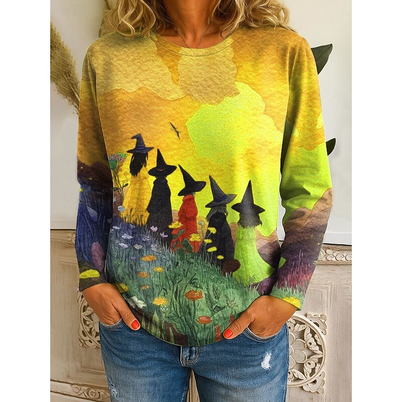 This Halloween Women's T shirt Witch Graphic Vintage Fashion Stylish Long Sleeve Crew Neck Regular Tops Daily Print Yellow Blue Orange Green Fall Winter combines elegant design with practical functionality. Every detail has been carefully considered to ensure you get the best possible experience. The high quality construction means this product will serve you well for years to come.