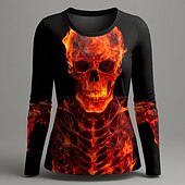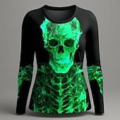 More information about Halloween Women's T Shirt Graphic Skull Fashion Casual Long Sleeve Crew Neck Round Neck Regular Tops Daily Weekend Print Red Blue Purple Green Summer Spring Fall