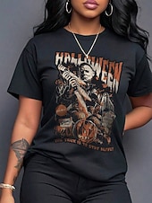 More information about Halloween Women's T Shirt Graphic Pumpkin Ghost Vintage Stylish Classic Short Sleeve Crew Neck Round Neck Regular Tops Daily Weekend Print Black Summer Spring Fall