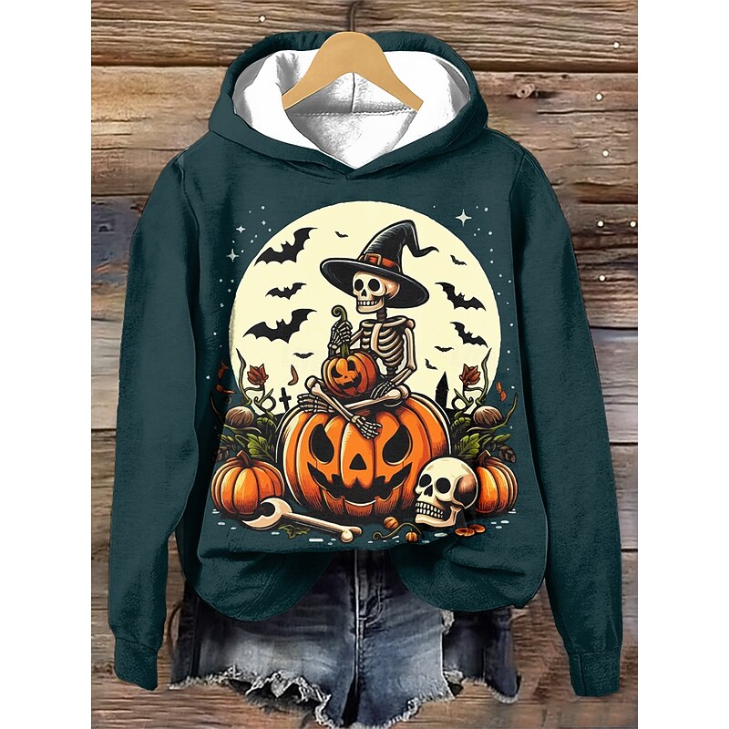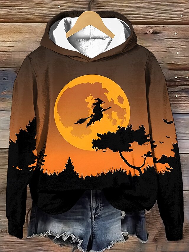 More information about Halloween Women's Hoodie Pullover Sweatshirt Oversized Long Sleeve Casual Witch Graphic Fashion Print Hooded Regular Tops Street Dailywear Drawstring Print Black White Purple Orange Green Fall