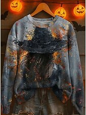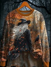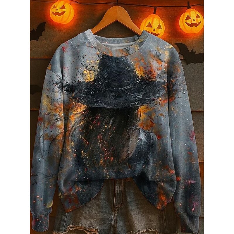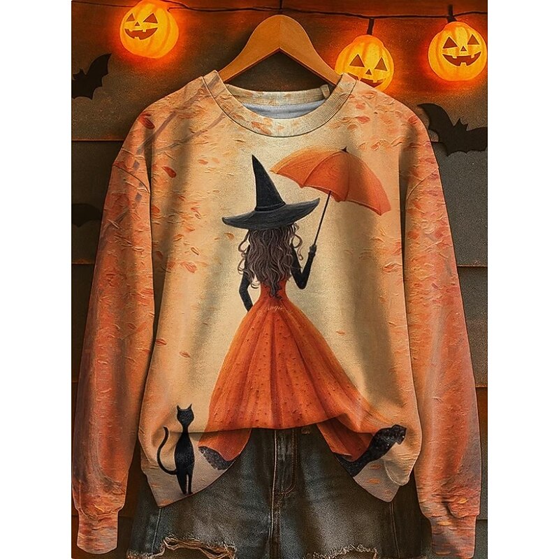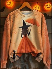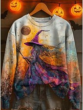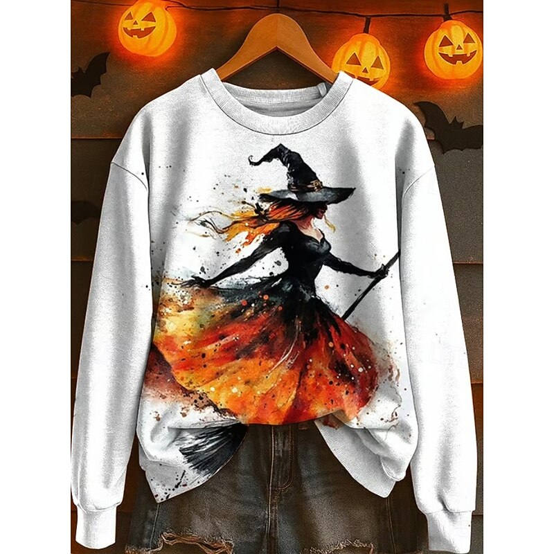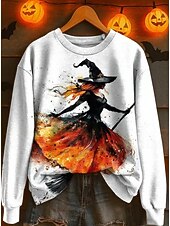 More information about Halloween Women's Sweatshirts Witch Graphic Fashion Casual Long Sleeve Crew Neck Regular Tops Street Dailywear Casual Print White Pink Blue Purple Orange Fall Winter