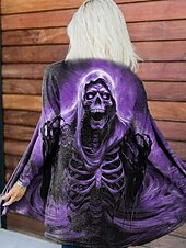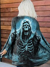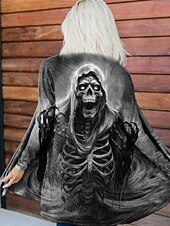More information about Women's Coat Lightweight Comfortable Print Vintage Artistic Casual Halloween Skull Casual Long Collarless Regular Fit Long Sleeve Outerwear Blue Purple Green Spring Fall