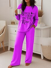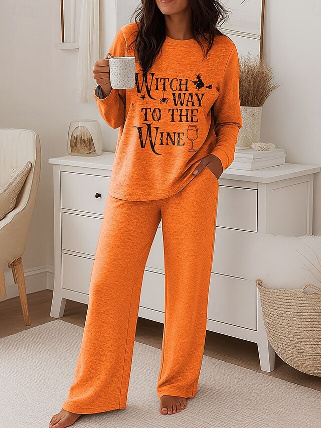 More information about Halloween Women's Witch Fashion T Shirt Pants Sets Long Sleeve Round Neck Graphic Letter Print Casual Daily Blue Purple Orange Spring Regular Fit