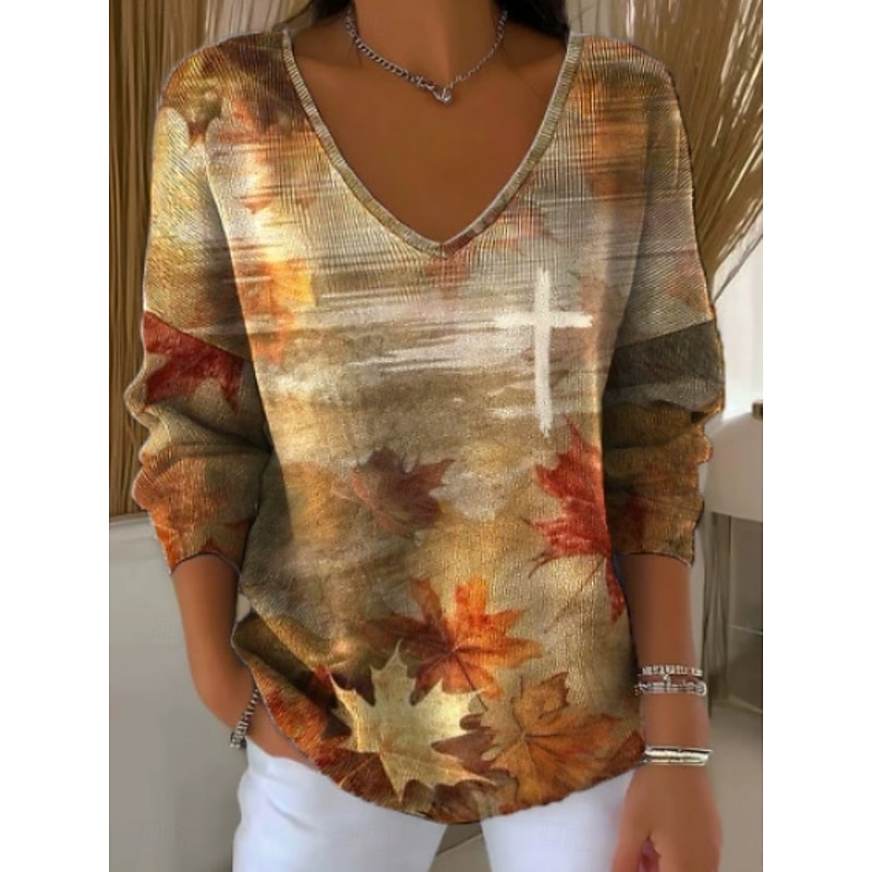 More information about Women's Sweater Casual Soft Floral Striped Ribbed V Neck Knitted Long Sleeve Regular Tops Knit Outdoor Daily Weekend Purple Orange Spring Fall