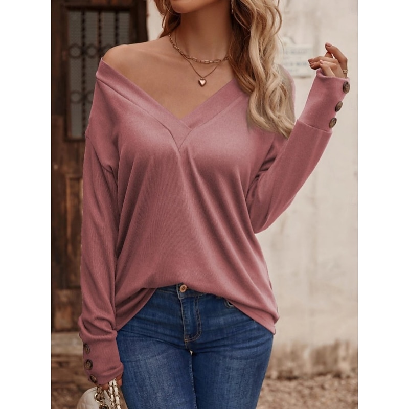 Why Choose Women's Sweater Casual Soft Pure Color Ribbed V Neck Buttons Long Sleeve Regular Tops Knit Outdoor Daily Weekend Black Pink Fall Winter?