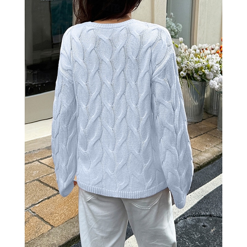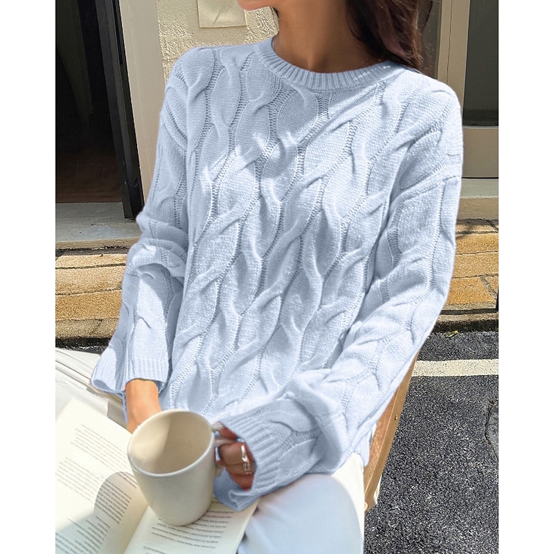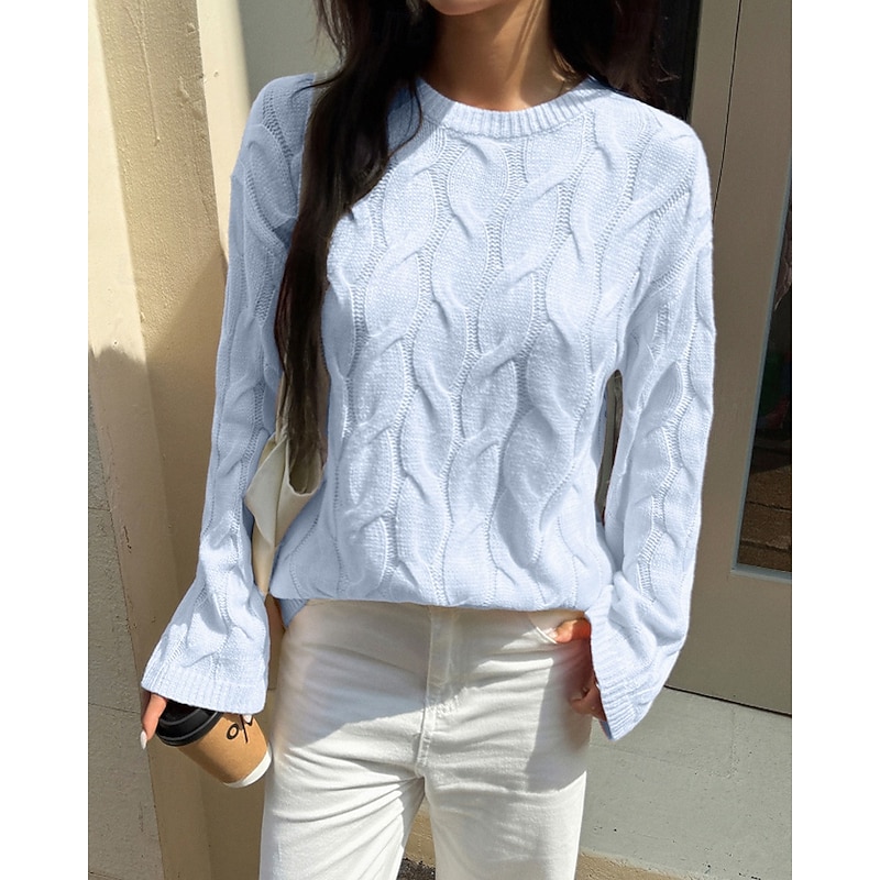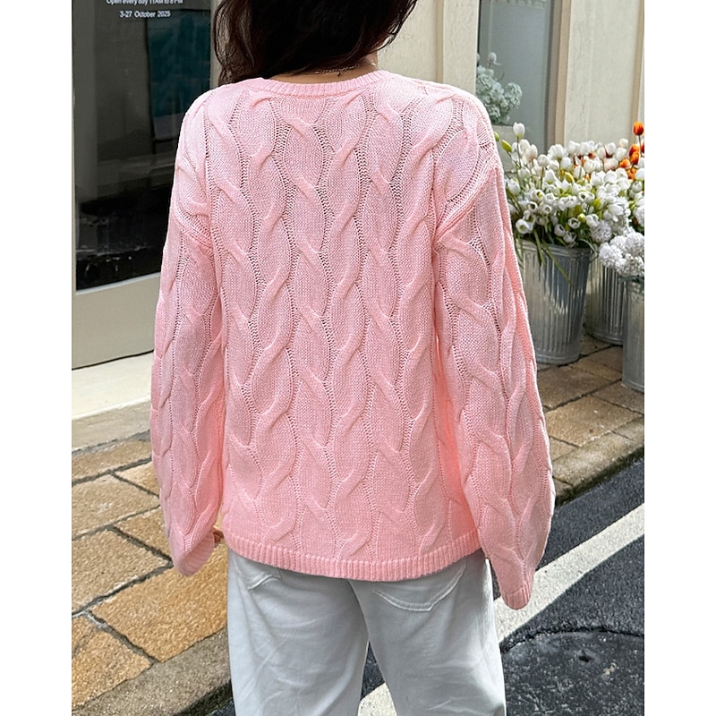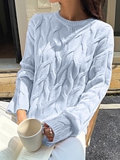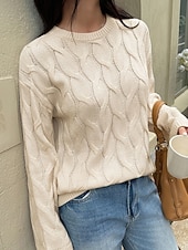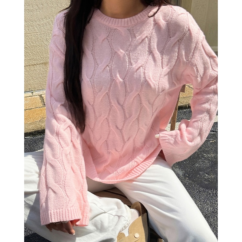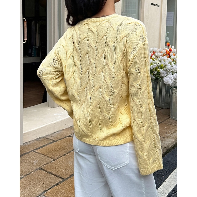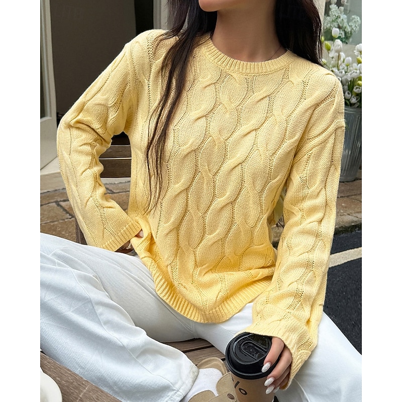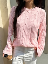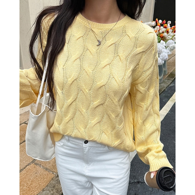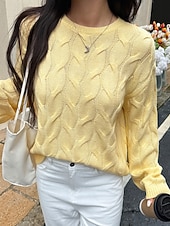 More information about Women's Sweater Pullover Streetwear Casual Solid Color Crew Neck Knitted Long Sleeve Regular Tops Knit Daily Holiday Going out Yellow Pink Fall Winter