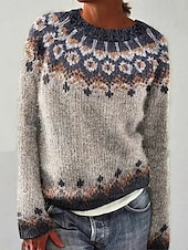More information about Women's Sweater Casual Soft Geometric Ribbed Crew Neck Knitted Print Long Sleeve Regular Tops Knit Outdoor Daily Weekend Yellow Green Fall Winter