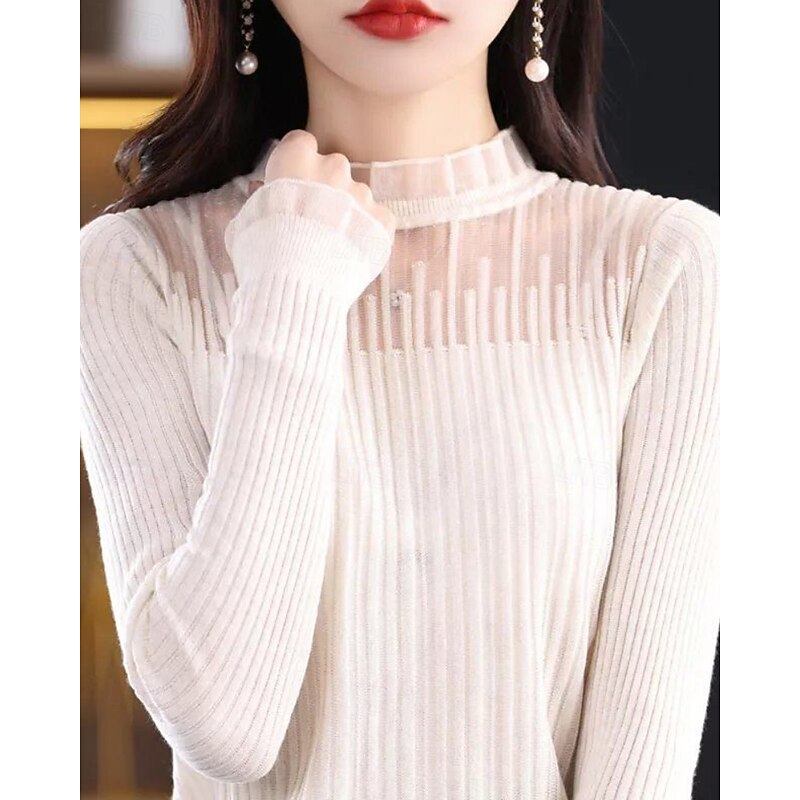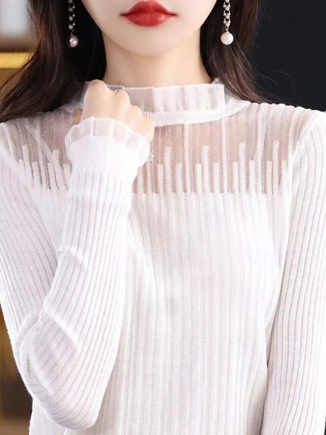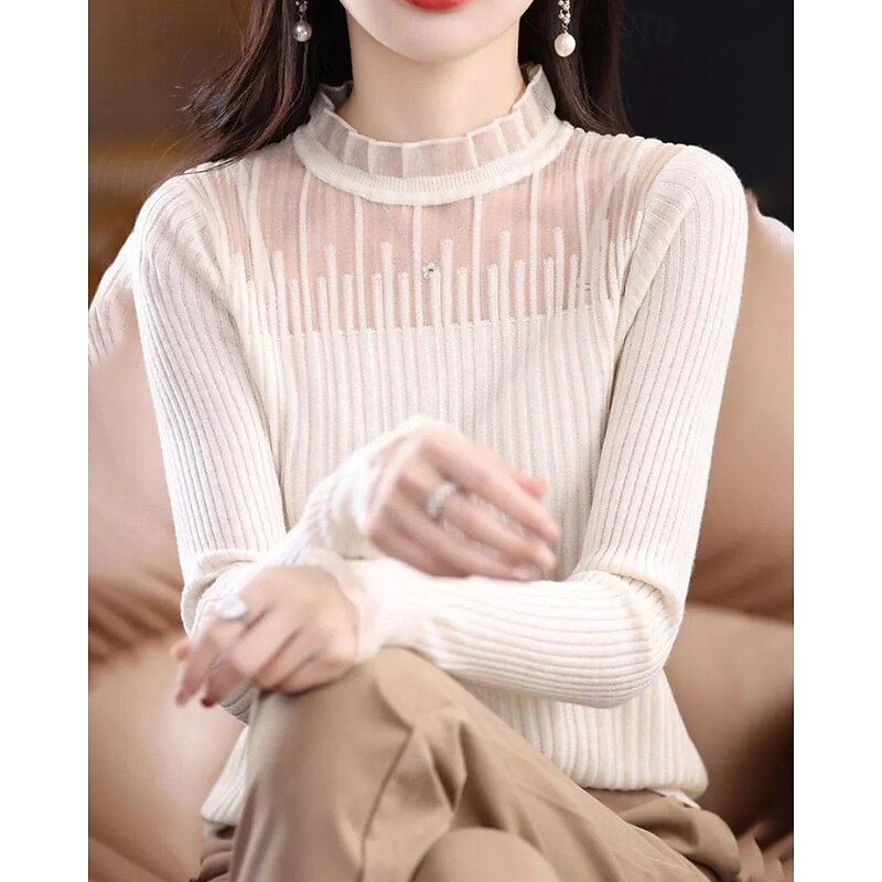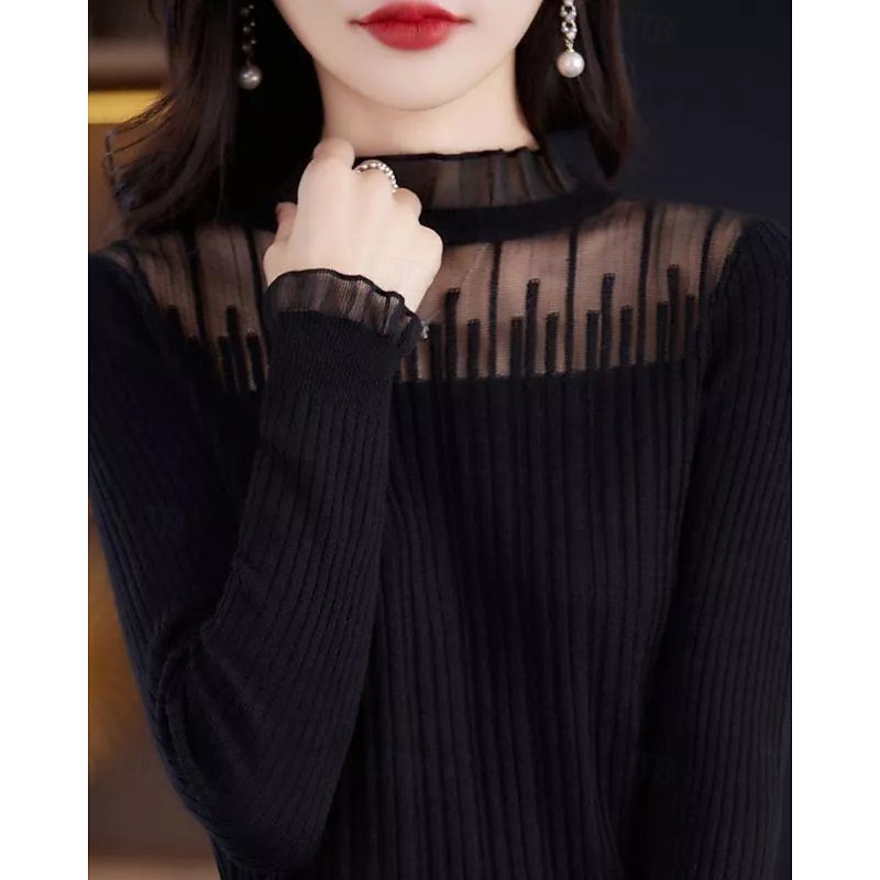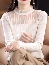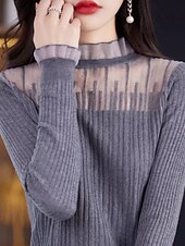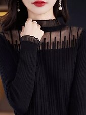 This Women's Sweater Pullover Streetwear Casual Solid Color Stand Collar Lace Patchwork Knitted Long Sleeve Regular Tops Knit Daily Holiday Going out Black White Fall Winter combines elegant design with practical functionality. Every detail has been carefully considered to ensure you get the best possible experience. The high quality construction means this product will serve you well for years to come.