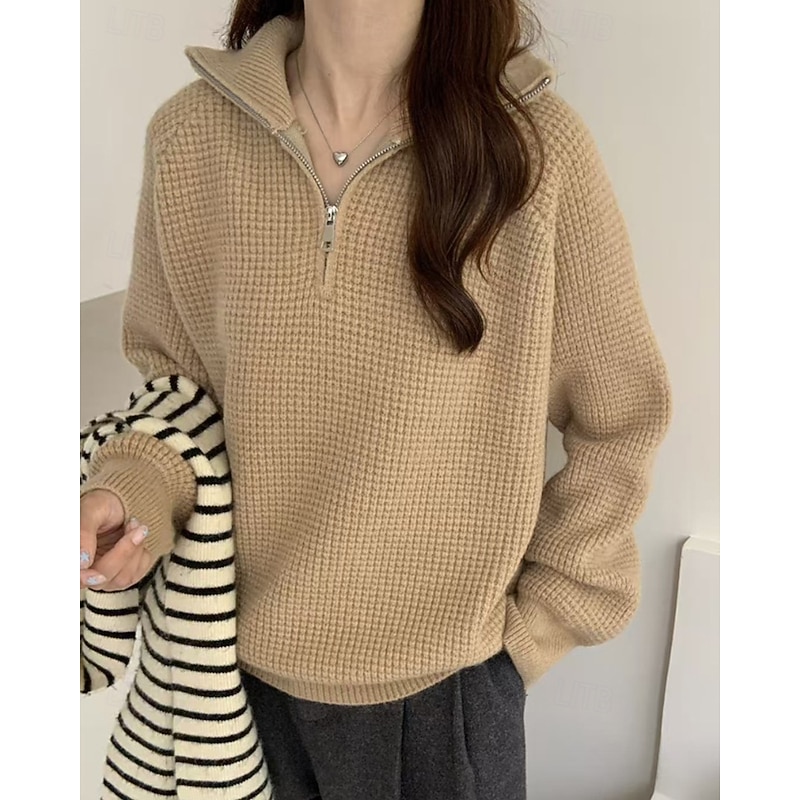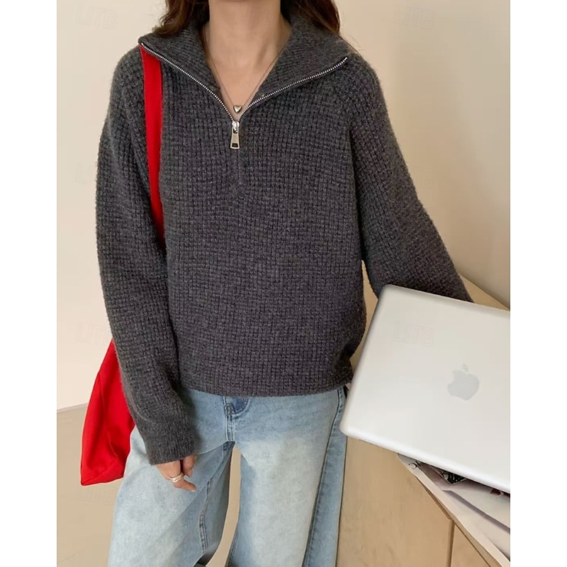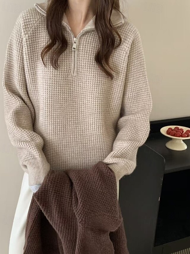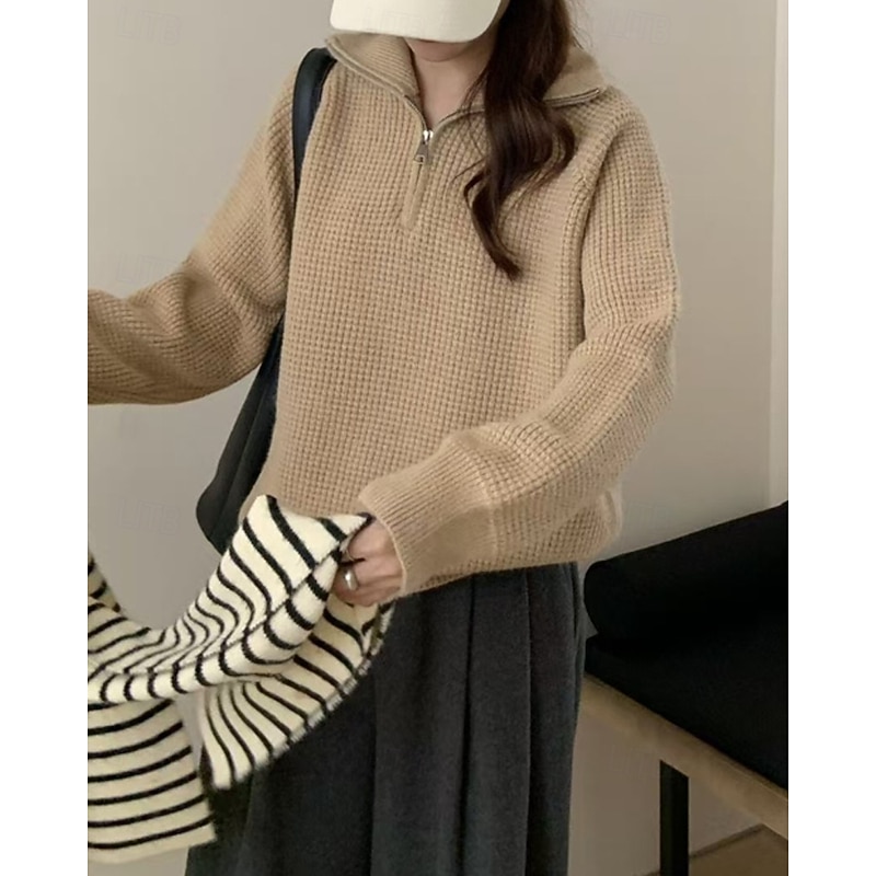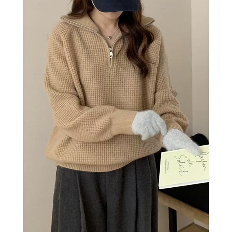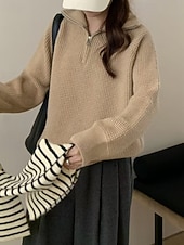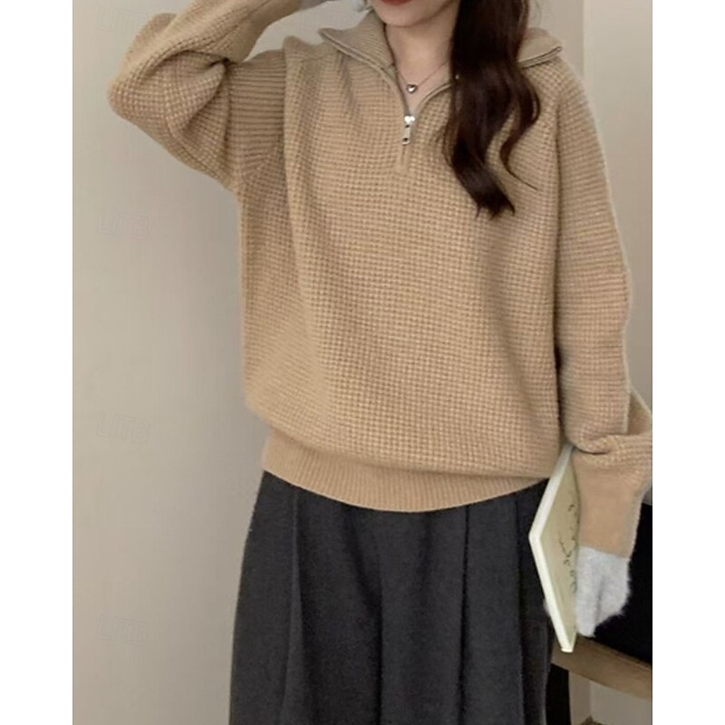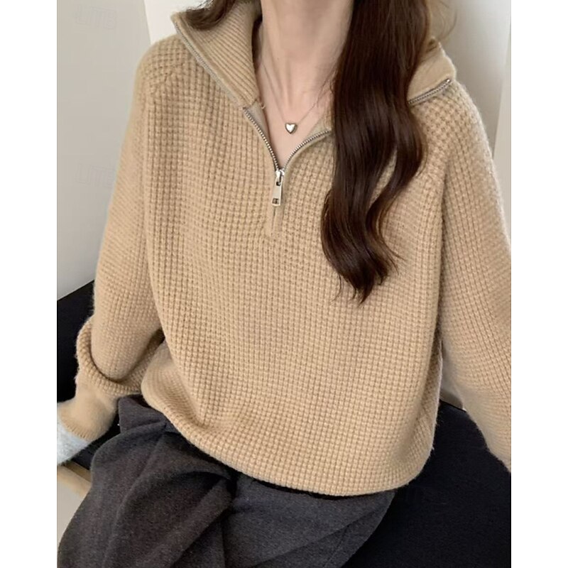 This Women's Sweater Pullover Streetwear Casual Solid Color Shirt Collar Zipper Knitted Long Sleeve Regular Tops Knit Daily Holiday Going out Khaki Dark Gray Fall Winter combines elegant design with practical functionality. Every detail has been carefully considered to ensure you get the best possible experience. The high quality construction means this product will serve you well for years to come.