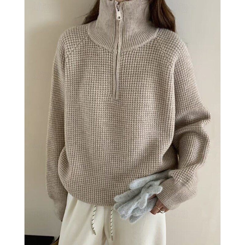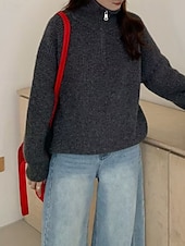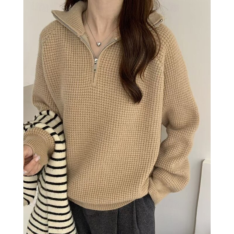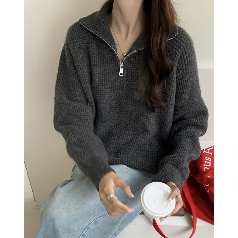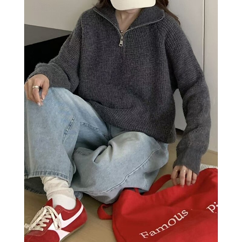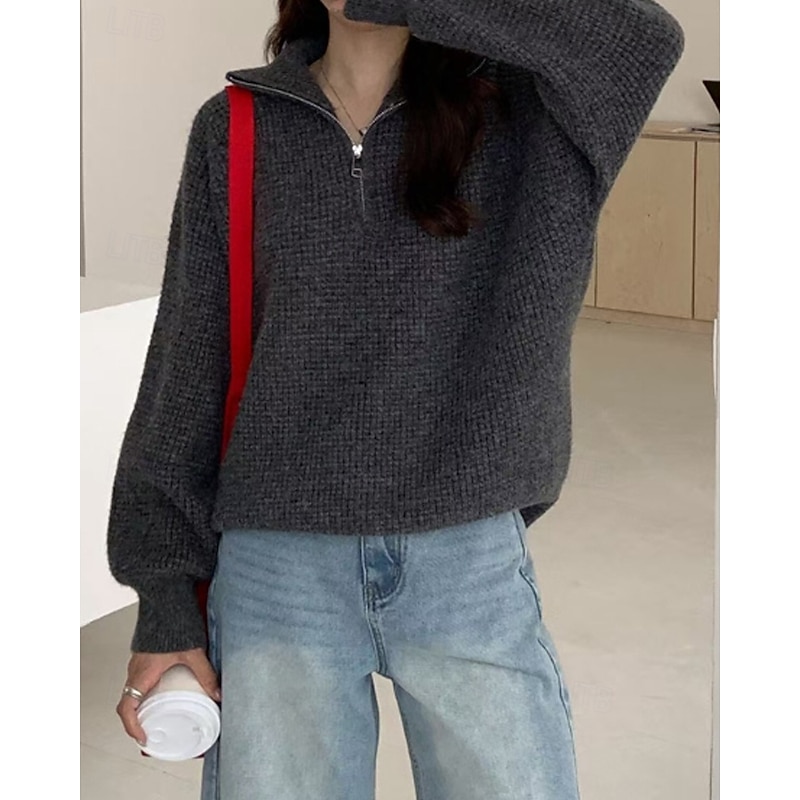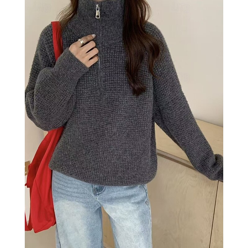 This Women's Sweater Pullover Streetwear Casual Solid Color Shirt Collar Zipper Knitted Long Sleeve Regular Tops Knit Daily Holiday Going out Khaki Dark Gray Fall Winter combines elegant design with practical functionality. Every detail has been carefully considered to ensure you get the best possible experience. The high quality construction means this product will serve you well for years to come.