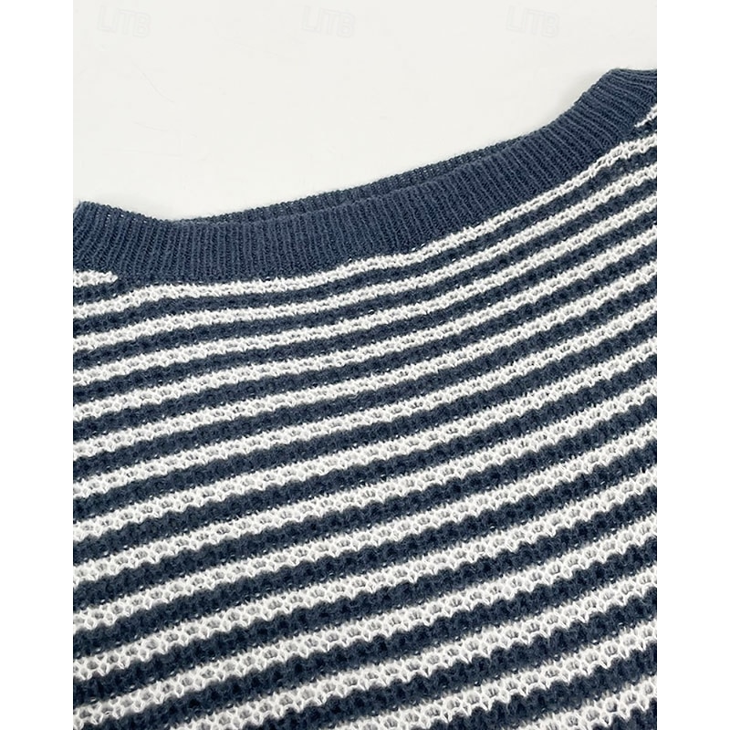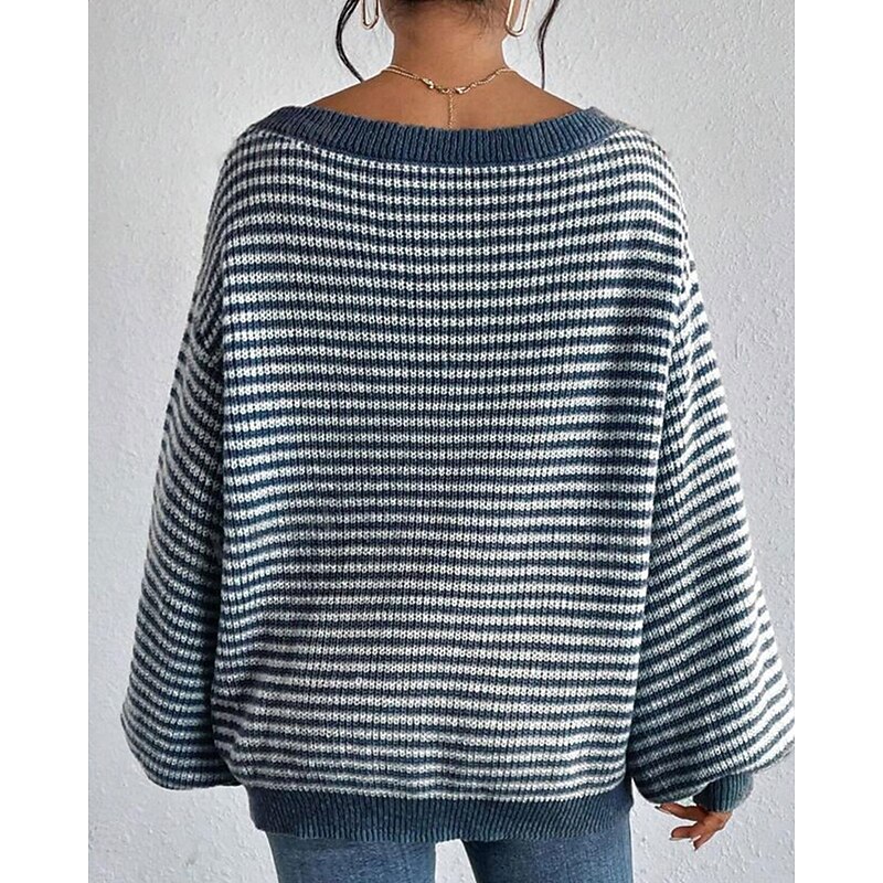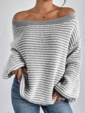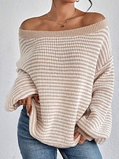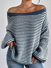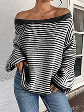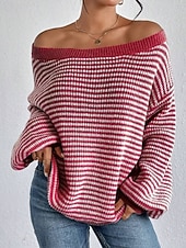 More information about Women's Sweater Pullover Streetwear Casual Striped Off Shoulder Knitted Long Sleeve Regular Tops Knit Holiday Going out Weekend Black Red Fall Winter