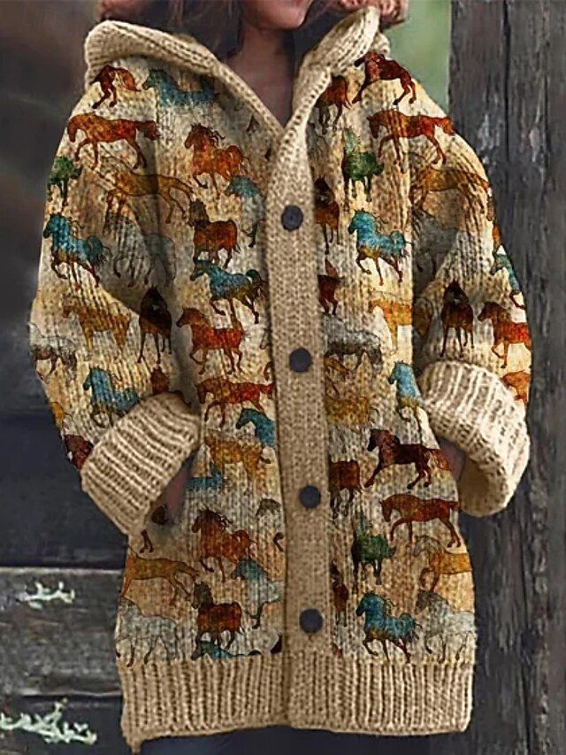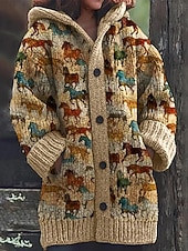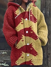 This Women's Cardigan Vacation Daily Animal Ribbed Hooded Knitted Print Front Pocket Long Sleeve Regular Tops Knit Outdoor Daily Holiday Yellow Red Fall Winter combines elegant design with practical functionality. Every detail has been carefully considered to ensure you get the best possible experience. The high quality construction means this product will serve you well for years to come.