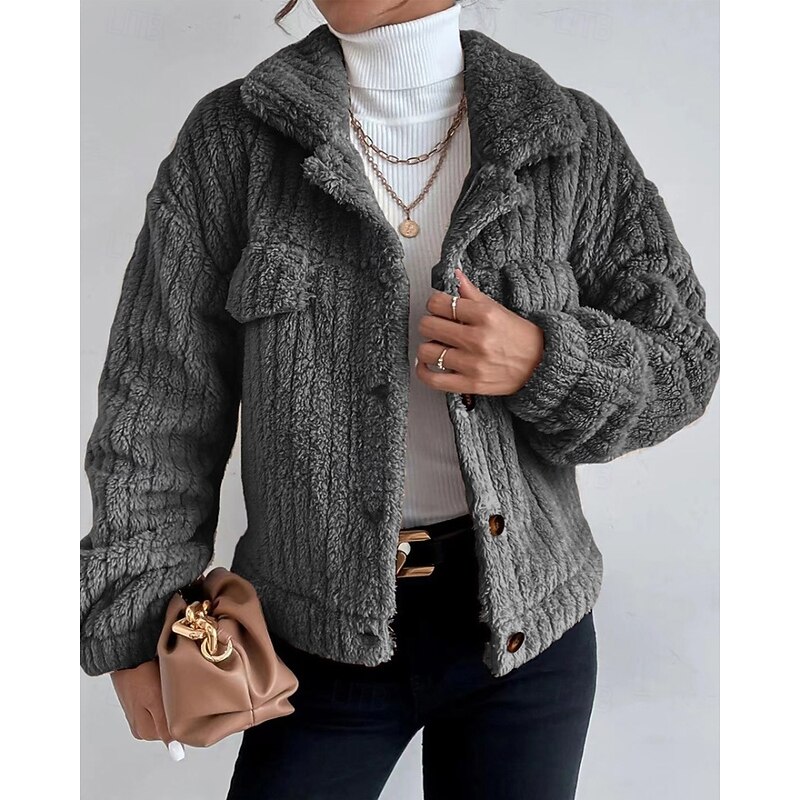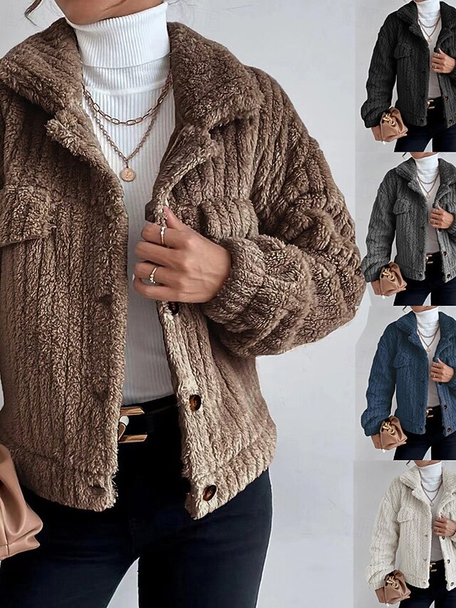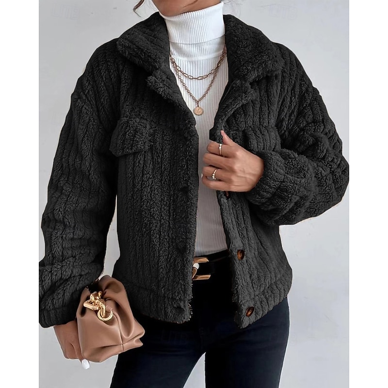 This Women's Winter Coat Fleece Jacket Warm Comfortable Pocket Buttons Fashion Plain Going out Weekend Single Breasted Regular Turndown Regular Fit Long Sleeve Outerwear Black Brown Dark Grey Winter combines elegant design with practical functionality. Every detail has been carefully considered to ensure you get the best possible experience. The high quality construction means this product will serve you well for years to come.