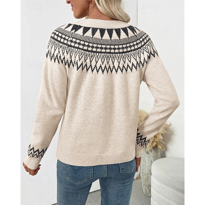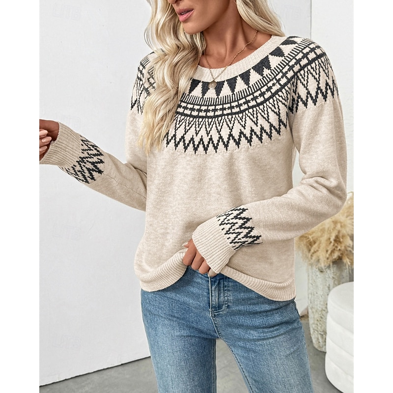 This Women's Sweater Fair Isle Sweater Pullover Vintage Fashion Casual Geometric Ribbed Crew Neck Knitted Print Long Sleeve Regular Tops Knit Christmas Outdoor Daily Apricot Fall Winter combines elegant design with practical functionality. Every detail has been carefully considered to ensure you get the best possible experience. The high quality construction means this product will serve you well for years to come.