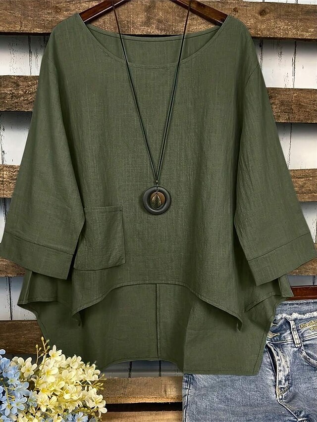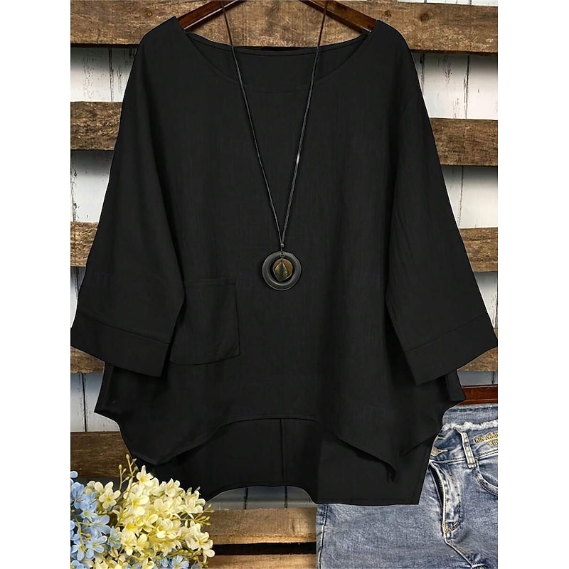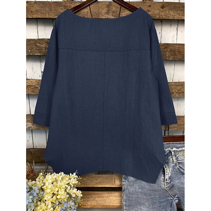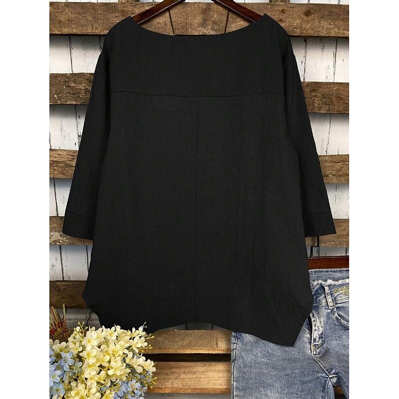 More information about Women's Cotton Linen Blouse Solid Color Elegant Casual 3/4 Length Sleeve Crew Neck Boat Neck Regular Tops Daily Holiday Black White Navy Blue Green Summer Fall