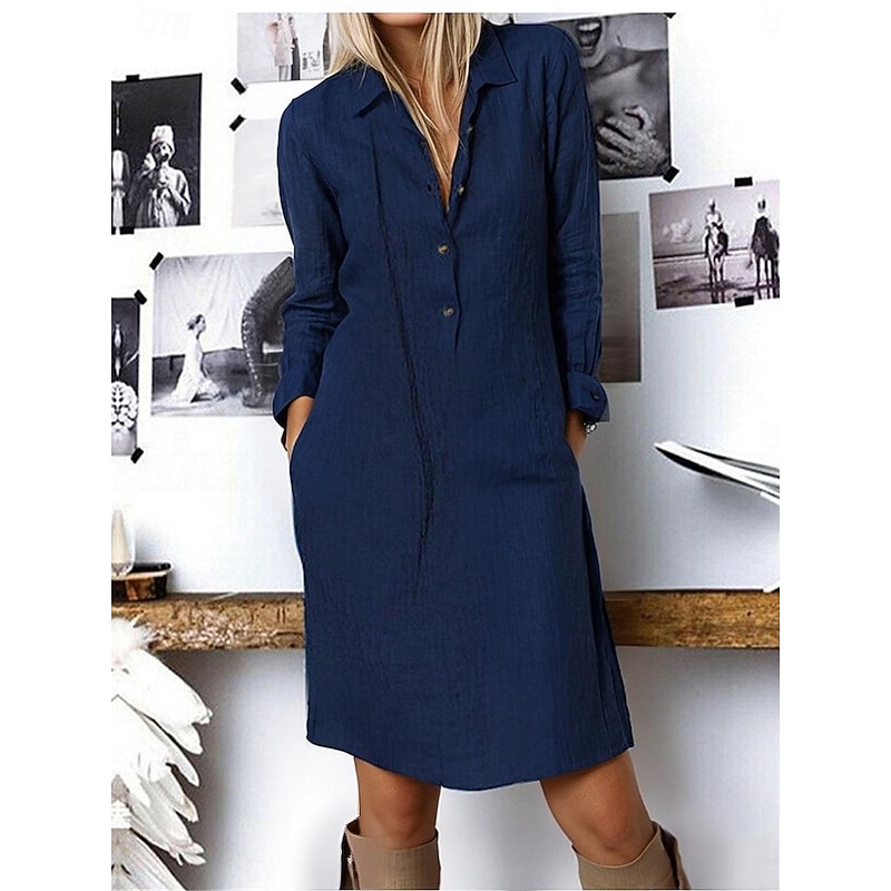 More information about Women's White Yellow Navy Blue Summer Spring Midi Dress White Dress Shirt Dress Cotton Linen Dress Basic Modern Daily Weekend Loose Fit Plain Shirt Collar