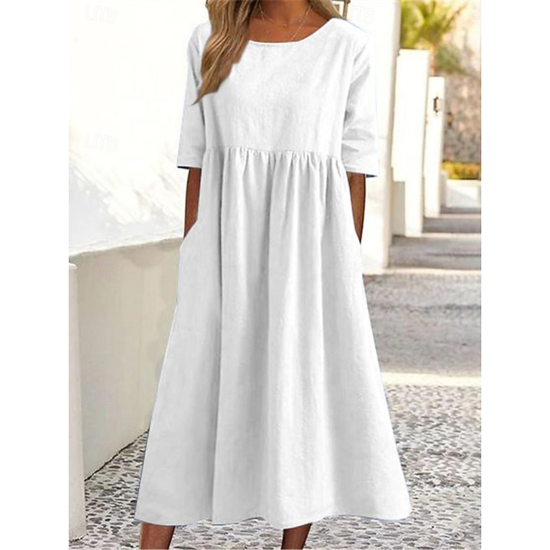 This Women's White Navy Blue Blue Summer Spring Midi Dress Linen-Inspired Dresses Casual Dress Cotton Linen Dress Basic Modern Daily Weekend Loose Fit Plain Shirt Collar combines elegant design with practical functionality. Every detail has been carefully considered to ensure you get the best possible experience. The high quality construction means this product will serve you well for years to come.