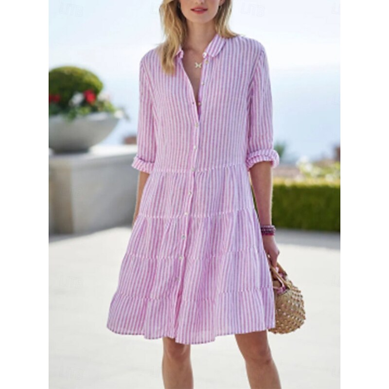This Women's Mini Dress Cotton Linen Dresses Shirt Dress Casual Dress Casual Vacation Daily Regular Fit Stripe 3/4 Length Sleeve Shirt Collar Pink Summer combines elegant design with practical functionality. Every detail has been carefully considered to ensure you get the best possible experience. The high quality construction means this product will serve you well for years to come.