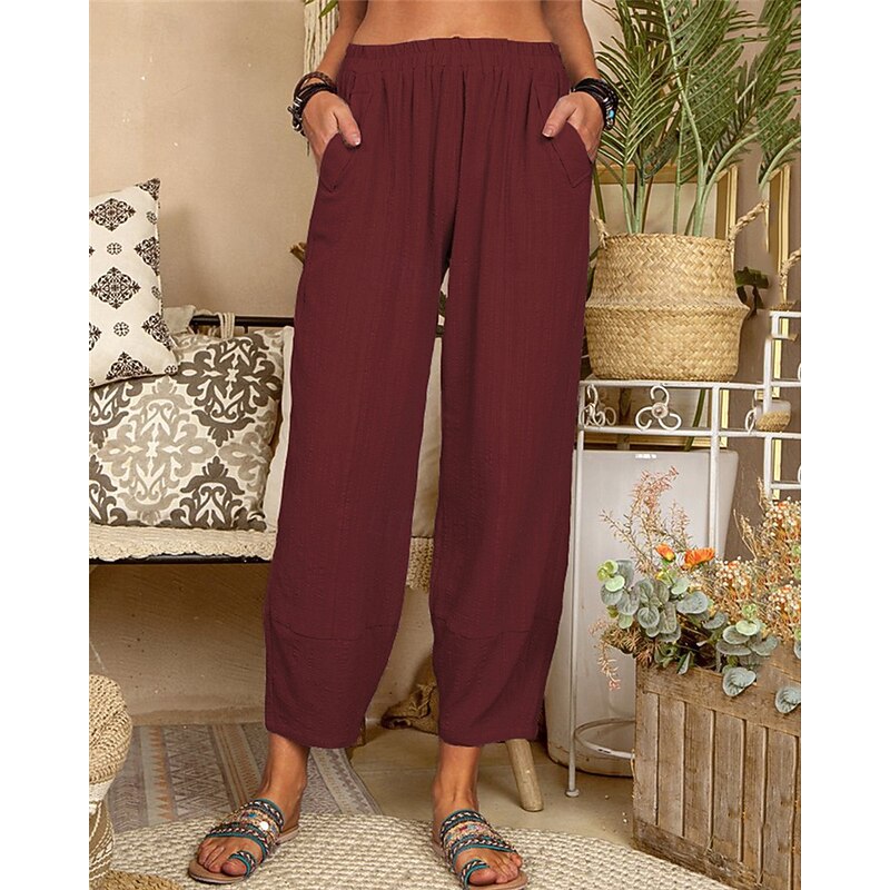 This Women's Cotton Linen Pants Pants Trousers Lightweight Casual Ankle-Length High Rise Plain Pocket Breathability Comfortable Inelastic Casual Daily Weekend Wine Navy Black White Summer Spring Regular combines elegant design with practical functionality. Every detail has been carefully considered to ensure you get the best possible experience. The high quality construction means this product will serve you well for years to come.