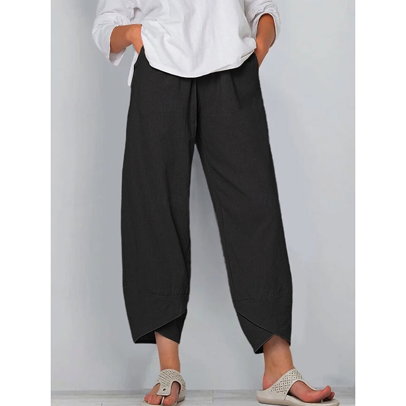 More information about Women's Cotton Linen Pants Baggy Pants Linen Like Chinos Fashion Basic Full Length Medium Waist Plain Pocket Drawstring Comfort Outdoor Micro-elastic Vacation Street Daily Grey Black White Dark Navy