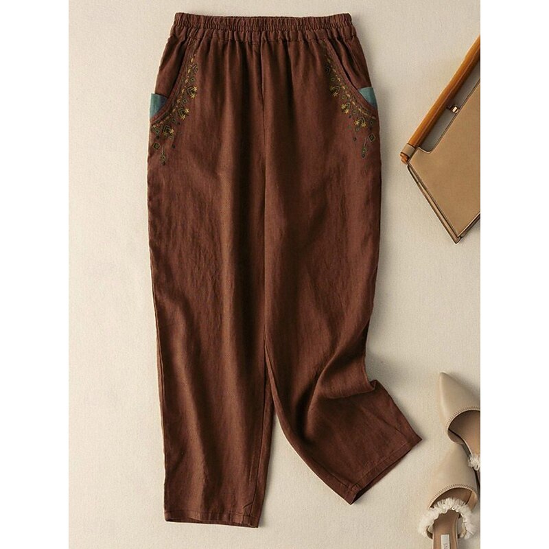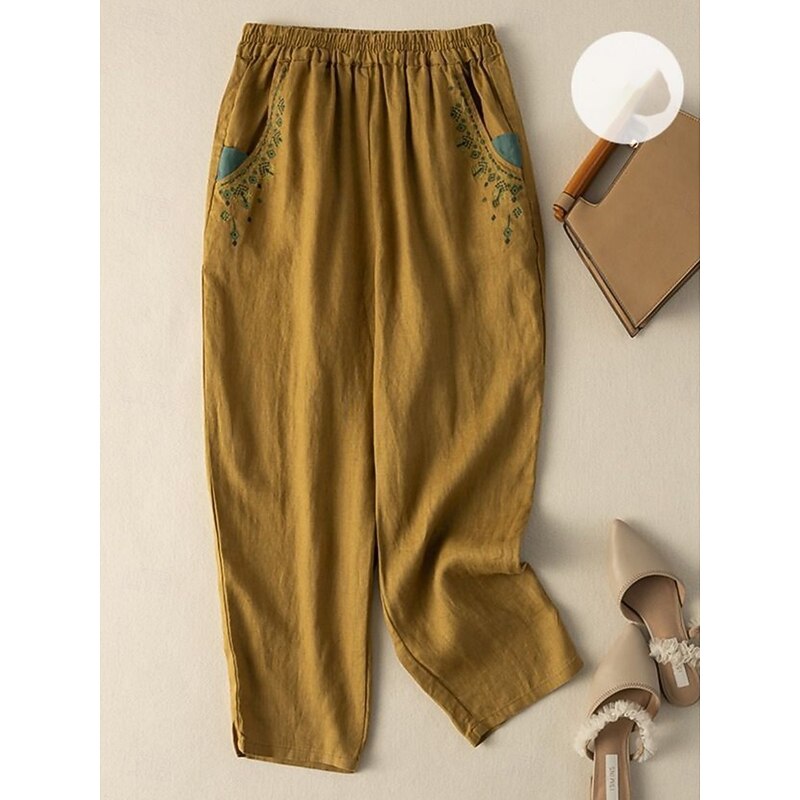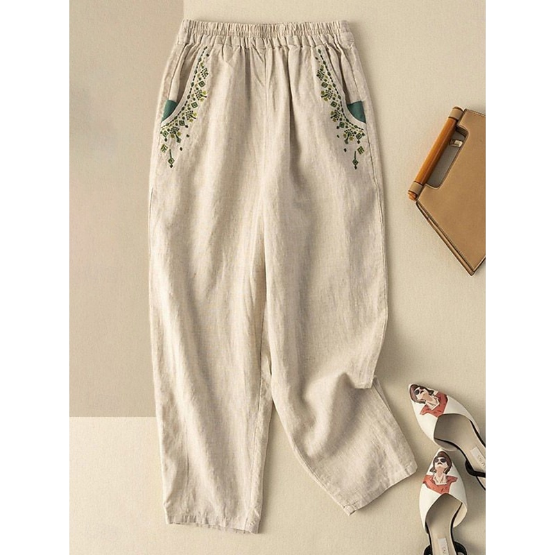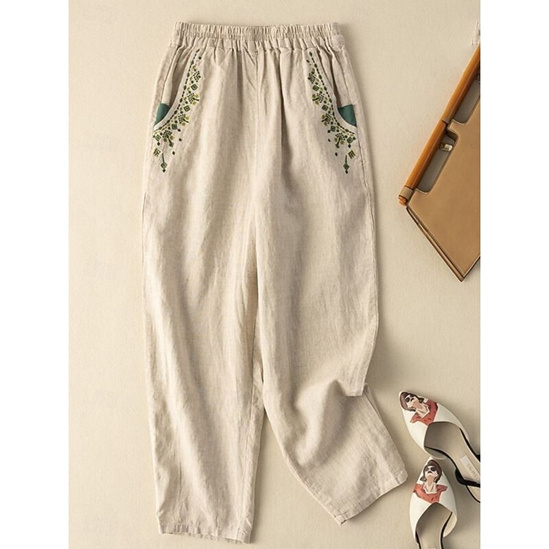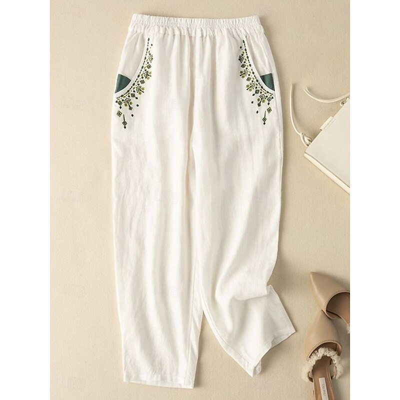 This Women's Cotton Linen Pants Chinos Fashion Basic Full Length High Waist Floral Embroidered Comfort Outdoor Micro-elastic Vacation Street Daily White Yellow Apricot Coffee Summer Spring Fall Regular Fit combines elegant design with practical functionality. Every detail has been carefully considered to ensure you get the best possible experience. The high quality construction means this product will serve you well for years to come.