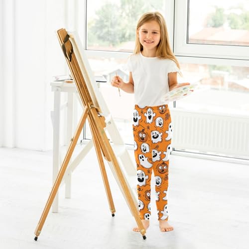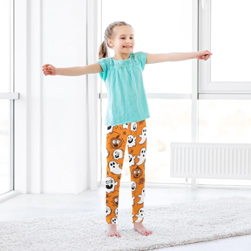 Funny Ghost Orange Girls Leggings Soft Stretch Workout Yoga Dance Pants for Kids Casual Tights