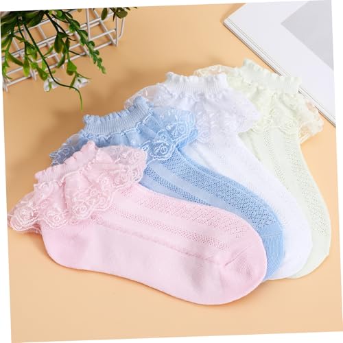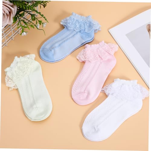 4pairs Girls Ankle Socks Breathable Lace Boot Socks for Casual Wear Soft Combed Cotton for Ages for Dress up and Everyday Activities