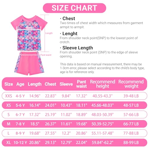 Girls Two Piece Swimsuits Bathing Suits for Little Girl Rash Guard Short Sleeve Beach Swimwear Set for Kid 4-12 Years