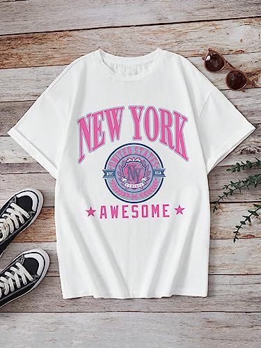 More information about COZYEASE Girls' Letter Graphic Print Crewneck Short Sleeve Tops Cute Casual Summer Tees White and Pink 14Y-CEHGJ20240221