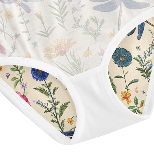 Wusikd Wildflowers Dragonflies Girls' Underwear Cotton Butterflies Girls Briefs Soft Toddler Underwear 2T