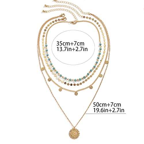 Gold Layered Turquoise Necklace for Women Multi Boho Long Necklace Bohemian Coin Pendant Necklaces Jewelry 4