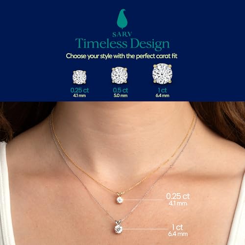 HOT ! SARV Solitaire Lab-Grown Diamond Pendant Necklace For Women with 16” Chain in 14K Recycled Gold, D-F Color, VVS, Excellent Cut, Hypoallergenic, Includes Product Passport and Gift-Ready Packaging, Conflict-Free