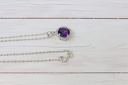 More information about 10K White Gold Genuine Amethyst 1-1/6 Ct Halo Pendant Necklace