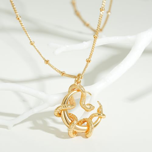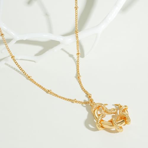 Fettero Gold Necklace for Women Snake Pendant 14K Gold Plated Charm Snake Animal Necklace for Everyday Jewelry