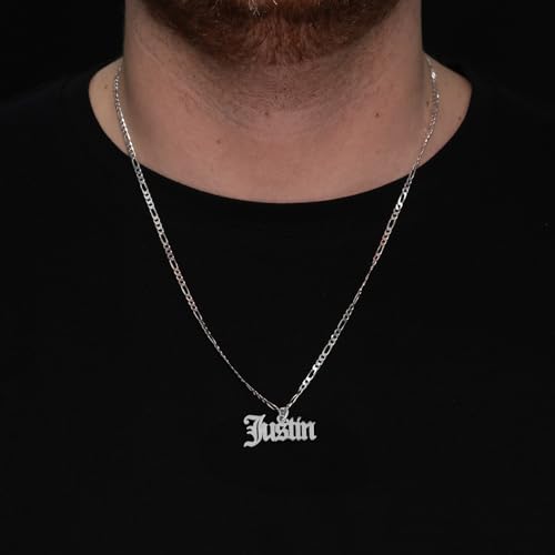 Beleco 18k Gold Plated or Sterling Silver 925 Custom Name Necklace - Personalized Name Plate Necklace with Elegant Figaro Chain, Old English Font | Customized & Personalized Necklaces 6