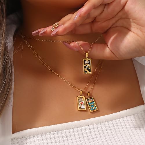 18k Gold Plated Tarot Cards Pendant Necklace - Vintage Colorful Charm Necklace Lucky Talisman Hypoallergenic for Women and Men Gift 4