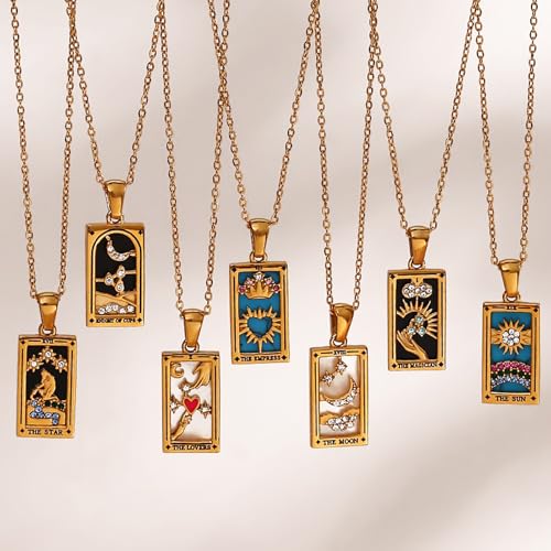 18k Gold Plated Tarot Cards Pendant Necklace - Vintage Colorful Charm Necklace Lucky Talisman Hypoallergenic for Women and Men Gift 7